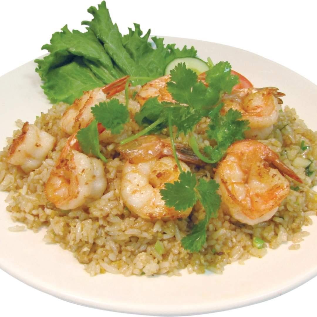 Customers can pair their fried rice with a choice of grilled pork, grilled chicken, shrimp, cuttlefish, salmon, scallops, tofu, or our deluxe mix of premium seafood and meats.