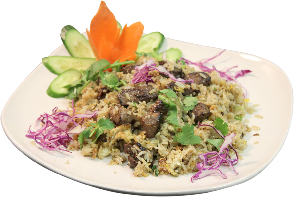 From the rich, savory warmth of the Original Garlic Butter to the tangy, spicy kick of Thai Tom Yum, these recipes showcase Angela’s culinary creativity and the influence of her travels. (She drew inspiration from bustling night markets in Thailand for the Tom Yum and Thai Basil versions, and from fragrant South Asian spice bazaars for the Curry flavor.) The result is fried rice that is intensely flavorful and unlike anything else in Orange County, marrying Vietnamese comfort food with pan-Asian flair.